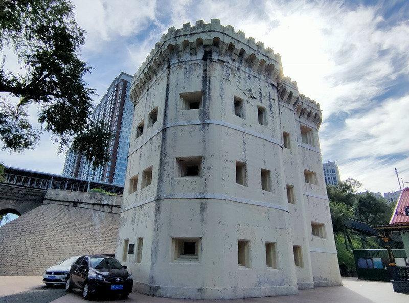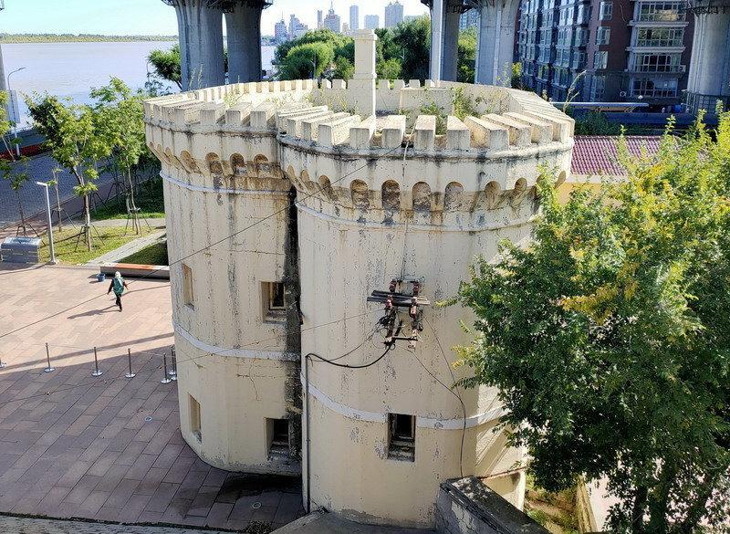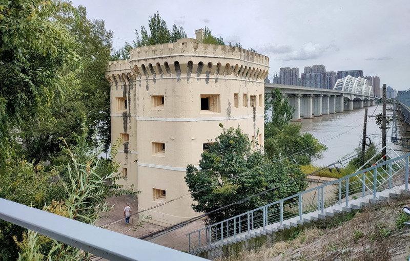 2014年12月10日,松花江特大桥正式使用(就是隔壁那白桥),中东铁路桥停用。2016年,老桥改作观光步行桥,成了著名的“网红桥”。我是从太阳岛那边,无意中看到、走上了中东铁路桥。黄色的建筑,网上说是桥头堡。