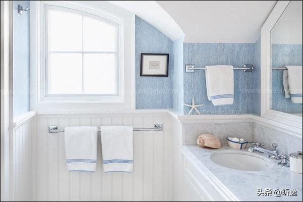 卫生间也是房屋装修中的一个非常重要的部分,所以谈到天蓝色的房间装修,它也是不可或缺的,在卫生间中蓝色和白色的搭配也显得非常实用。设计师在卫生间的设计中采用了海的元素,所以这里的天蓝色已经与海的蓝色相互融合,形成了海天一色的景象。在蓝色的布景中有一丝丝的白色,显得相当别致。