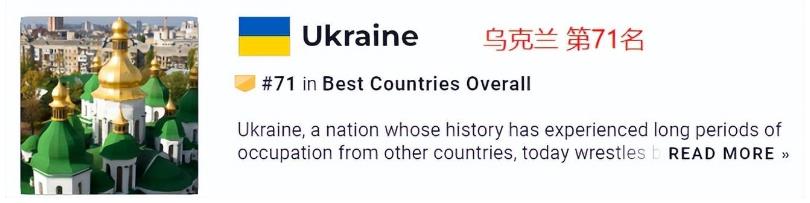 乌克兰排在第71名,乌克兰被称为“欧洲的粮仓”,是一个以农业为主的国家。一直以来,乌克兰内部局势不稳,经济发展缓慢,生活水平并不高。