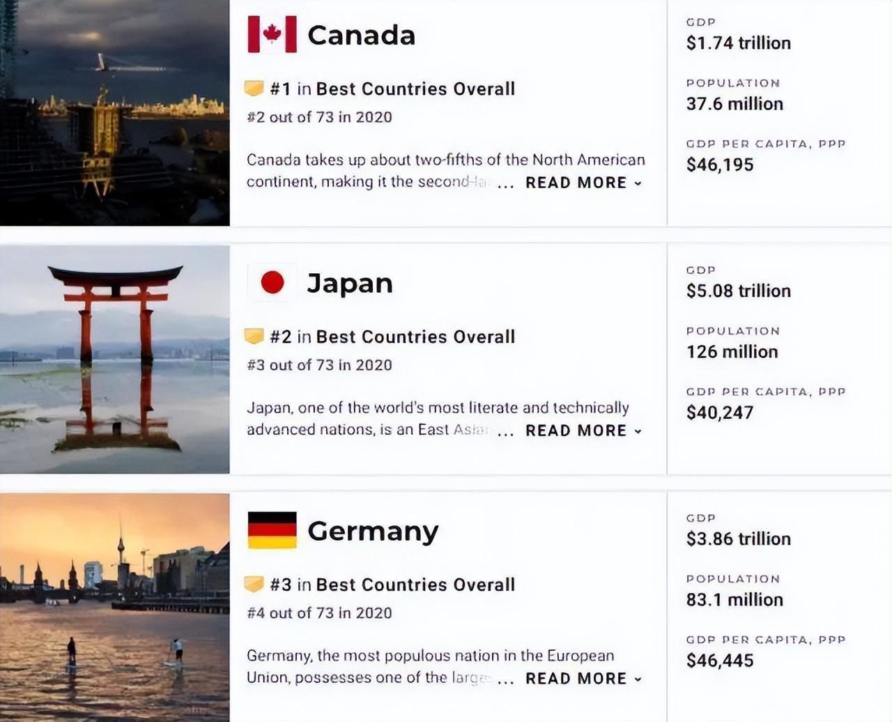 全球最佳国家排名:加拿大第1,日本第2,美国第6,那中、俄呢?