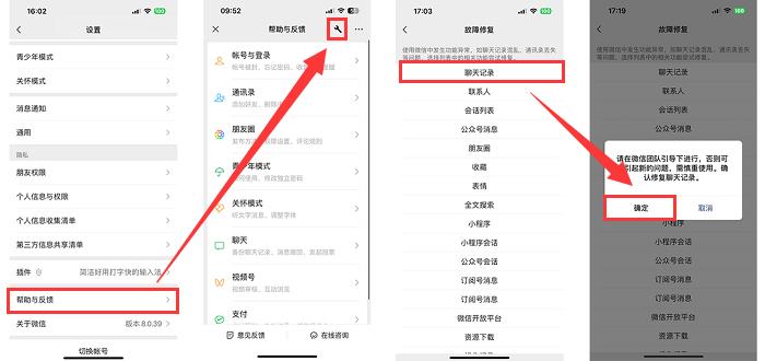 步骤3:点击【故障修复】,然后选择【聊天记录】,最后根据弹窗提示点击确认,等待聊天记录恢复即可。