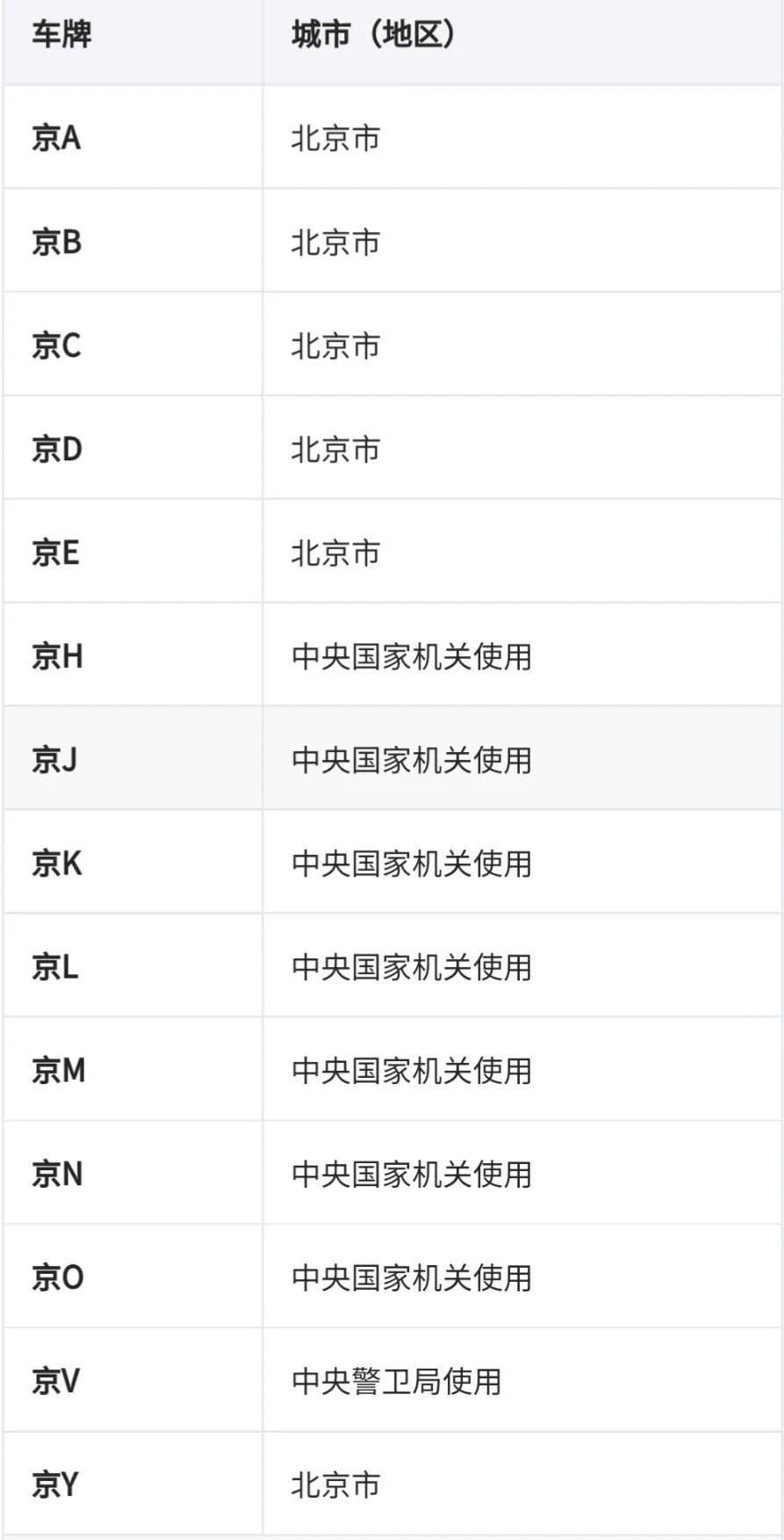 2009年4月25日起,北京车牌号段取消城区与郊区之分;京P,2008年8月为北京奥运会临时专用车牌,2009年1月起向普通车辆发放。