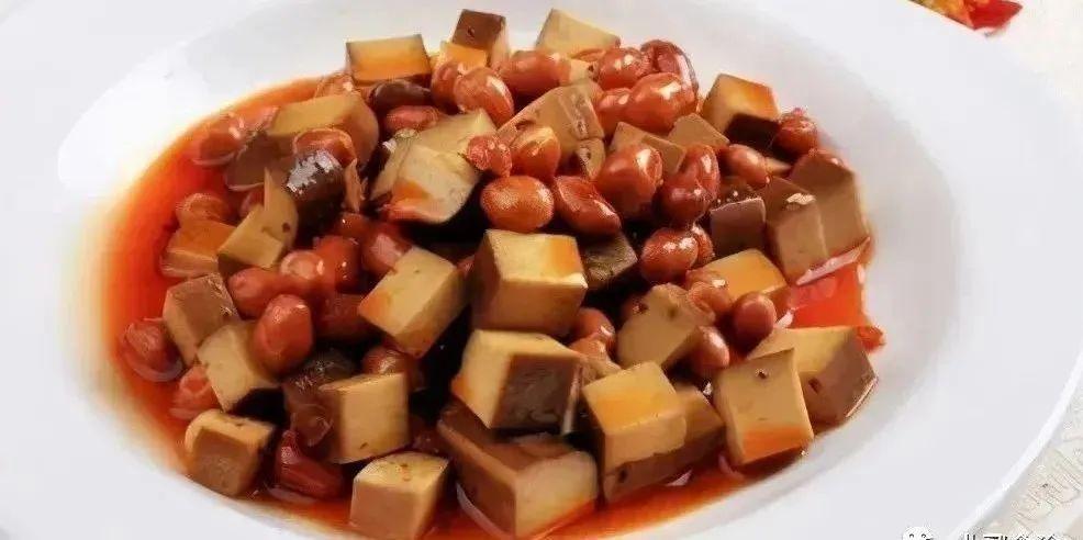 1.白萝卜,豆腐干分别洗净,切丁,与酥花生仁一起装盘。