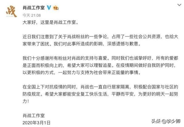 试想,粉丝聚集8000人举报网站,艺人和工作室怎会不知情?知情而不阻止,任由事态发展,酿成如今的后果,其中难道没有肖战及其工作室的责任吗?事发后,肖战工作室也只是简单发了一个声明,肖战的这份声明,不痛不痒,不对被网暴的原创作者道歉、不对平台道歉、不对受到影响的创作者们道歉,仅仅是为自己在疫情期间占用了公共信息资源而道歉。可以说是一份零分答卷,基本上没有答在点上,表现出来的皆是“这是粉丝行为,与明星无关”的冷冰冰的公关语言。
