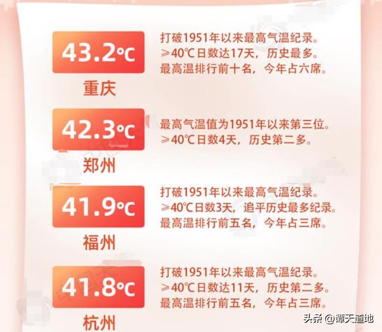 除了重庆、杭州外,郑州、福州,今年也很热,均达到和接近历史最高值!