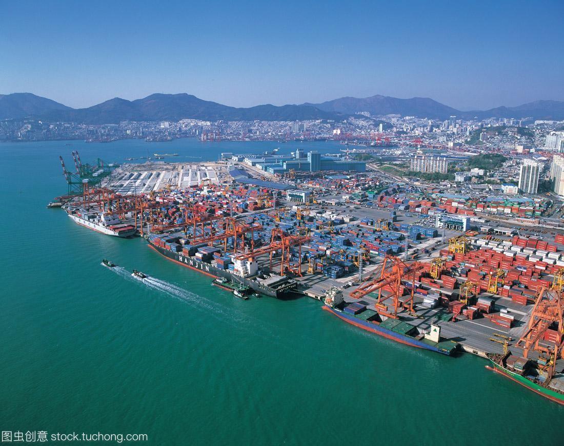 釜山港濒临朝鲜海峡,港阔水深,建有集装箱码头、散货码头、原油码头等,1876年开港,2000年开始连续三年居世界第三大集装箱港,2019年集装箱吞吐量2191万标准箱、货物装卸量4.67亿吨,是世界第六大集装箱港和货物装卸量第10大海港(集装箱吞吐量仅次于上海港、新加坡港、宁波舟山港、深圳港和广州港,货物装卸量仅次于宁波舟山港、上海港、唐山港、新加坡港、广州港、青岛港、苏州港、黑德兰港和天津港)。