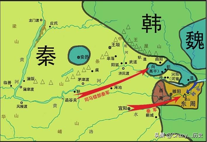 这个建议被秦国高层采纳。河东秦军对安邑围而不攻,司马错率领精兵再下轵道,借助现有据点袭击河内。与此同时,秦昭王另派一支部队取道三川,在黄河南岸的夏山一带策应河内秦军。