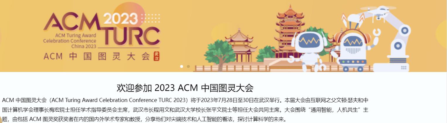 首届图灵大会:首届中国图灵大会于2014年12月14日在北京举行。这次大会是由中国计算机学会人工智能与模式识别专委会(CCF AI & PR)主办的,吸引了来自学术界和工业界的专家学者和研究人员参与。第二届图灵大会:第二届中国图灵大会于2016年10月15日至16日在天津市举行。这次大会扩大了规模,并吸引了更多的国际与国内机构和企业的参与。大会内容包括学术报告、技术展示和主题研讨等。第三届图灵大会:第三届中国图灵大会于2017年9月17日至18日在北京市举行。该届大会以“人工智能的新时代”为主题,聚焦于人工智能的最新技术、发展趋势和应用领域等。第四届图灵大会:第四届中国图灵大会于2018年8月19日至21日在北京市举行。这届大会主题为“共享、驱动、共创”,旨在推动人工智能与互联网、医疗、金融等行业的融合与创新。第五届图灵大会:第五届中国图灵大会于2019年10月20日至23日在北京市举行。该届大会以“引领人工智能时代,创造智慧生活未来”为主题,讨论了人工智能在智慧城市、智能制造、智能交通等领域的应用和前景。第六届图灵大会:第六届中国图灵大会于2020年11月14日至15日在广州市举行。考虑到COVID-19疫情的影响,该届大会采取了线上线下相结合的形式,提供了在线直播和云展示等方式,使更多人能够参与。第七届图灵大会:ACM 中国图灵大会(ACM TURC 2021)2021年7月30日至8月1日在中国合肥举行,主题为“智能+与工业互联网”。第八届图灵大会:ACM 中国图灵大会(ACM Turing Award Celebration Conference TURC 2023)将于2023年7月28日至30日在武汉举行。大会围绕“通用智能,人机共生”主题,由包括 ACM 图灵奖获奖者在内的国内外学术专家和教授,分享他们对尖端技术和人工智能的看法,探讨计算科学的未来。