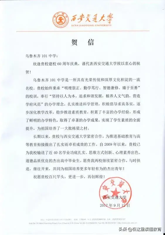 2017年金秋九月,翠染天山。滋养于华夏文明,沐浴着西域古风,新疆首批示范高中——乌鲁木齐市第101中学迎来了她60华诞。