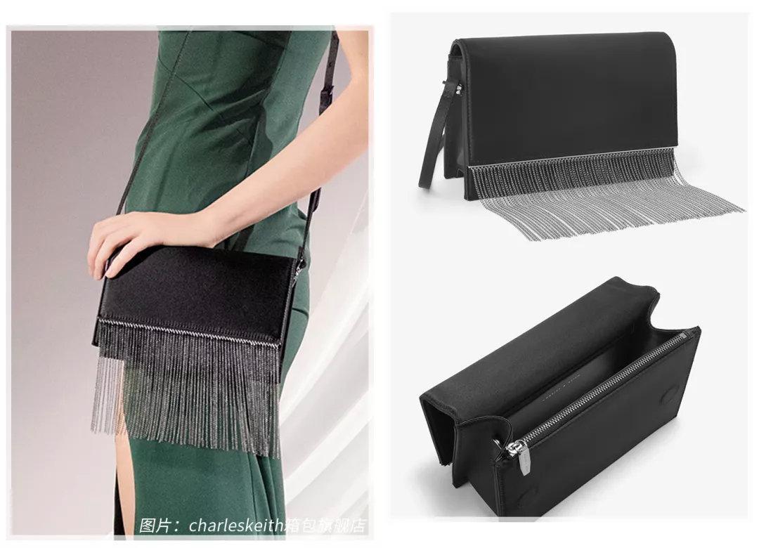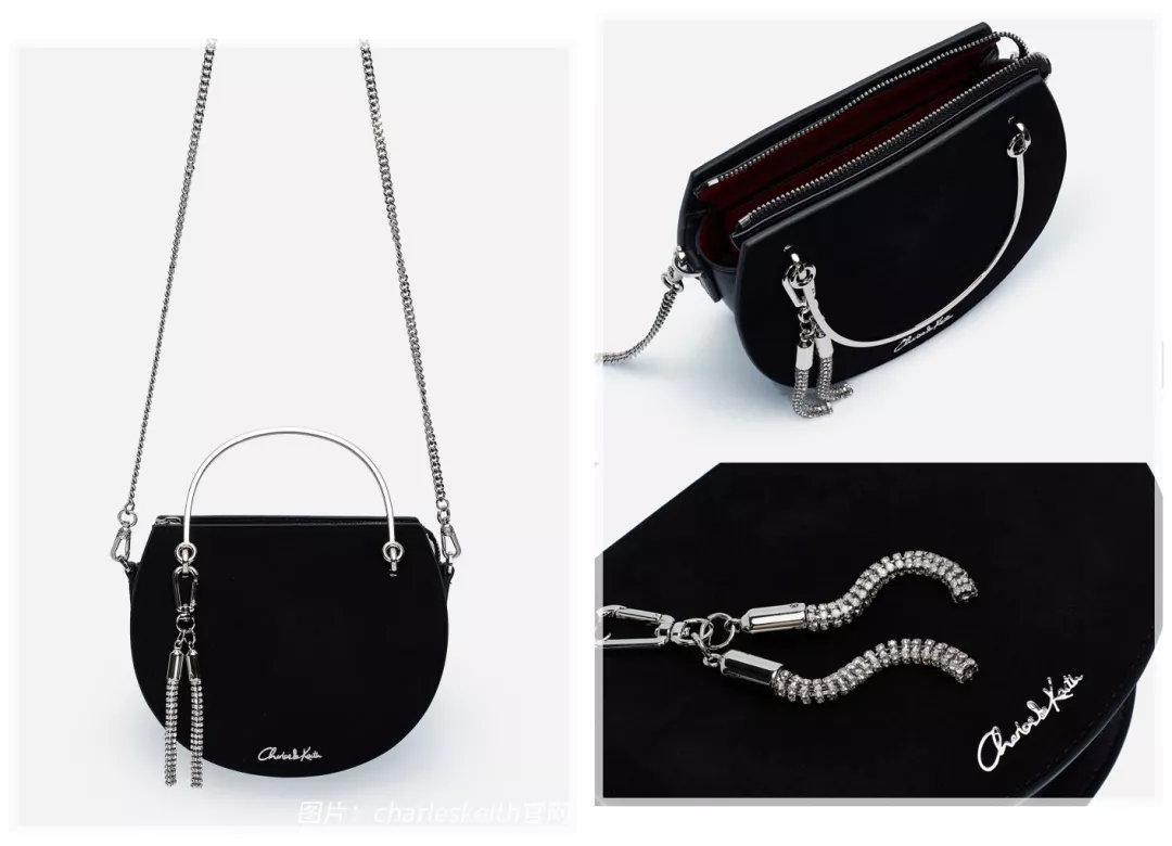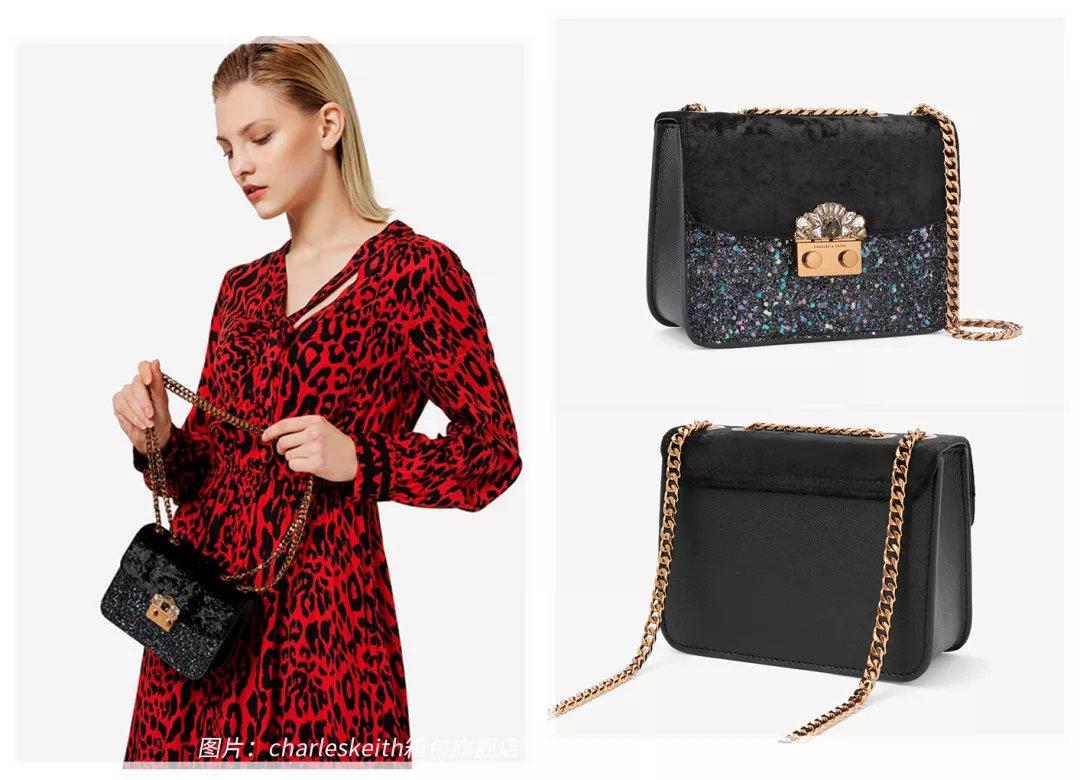 不喜欢平淡的极简风,推荐pick这个宝石亮片设计的链条小方包。有3个颜色款,我觉得黑色款有种低调中的奢华,金属锁扣上还有水钻点缀,翻盖也是绒面质地的,现在这个季节背就刚刚好。