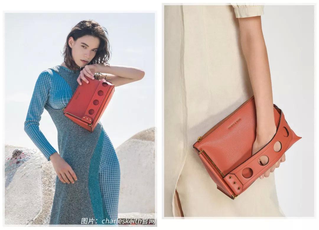 这款最吸引我的是它的设计,单肩手拿都可以,圆孔的饰带时髦感满分。颜色看起来是有点偏橘的砖红色,倒是还蛮适合春夏季背的。