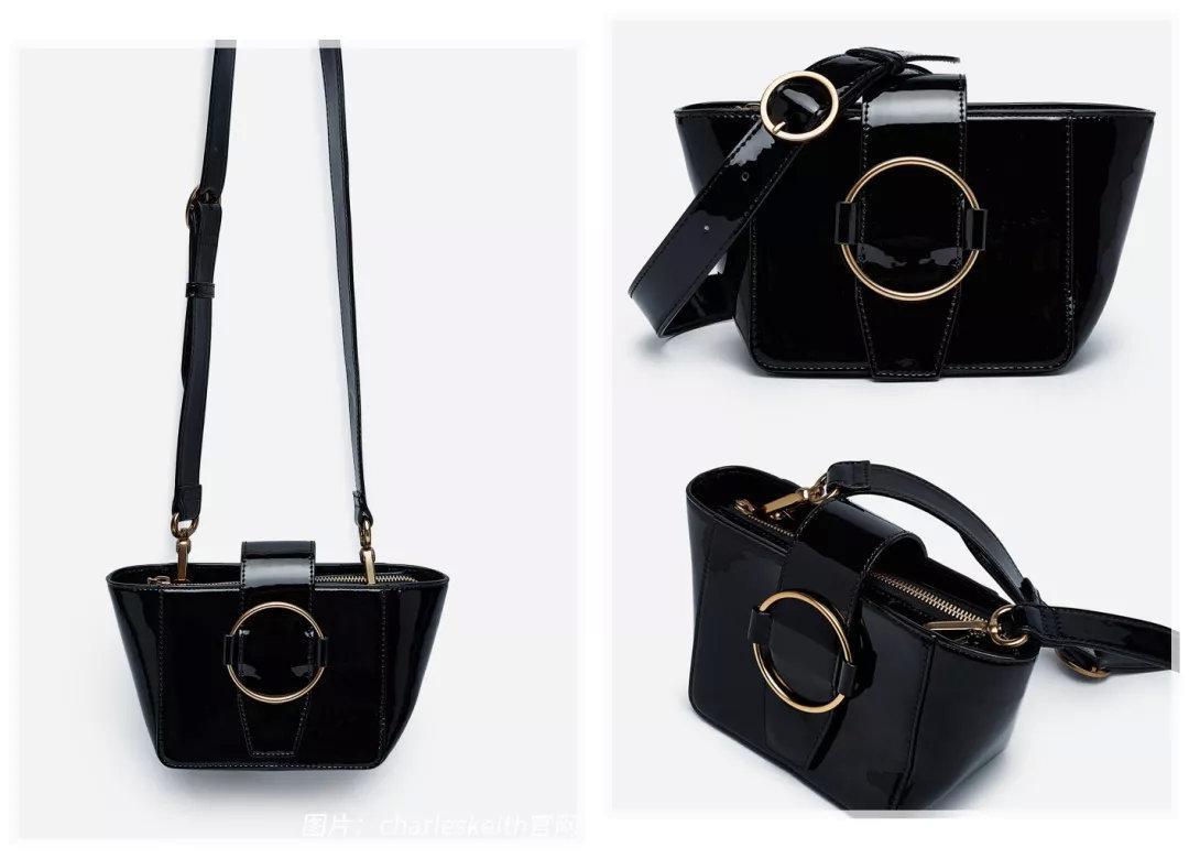漆光皮革的黑色小包,我很喜欢这种圆环扣带的设计,极简风引起强烈舒适。整个包型看起来也很可爱,学生党日常也可以背。