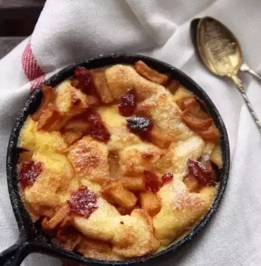 吐司4片、淡奶油/牛奶180ml、蔓越梅干/葡萄干/蓝莓干20克、鸡蛋3个、细砂糖45克、黄油10克