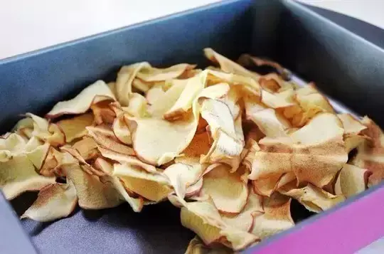 5、放入预热好的烤箱中,160度烘烤15分钟。然后把水果片移至烤网上继续烘烤约1小时左右(不同水果的烤制时间不同,以烤到色泽金黄,口感筋道为准)