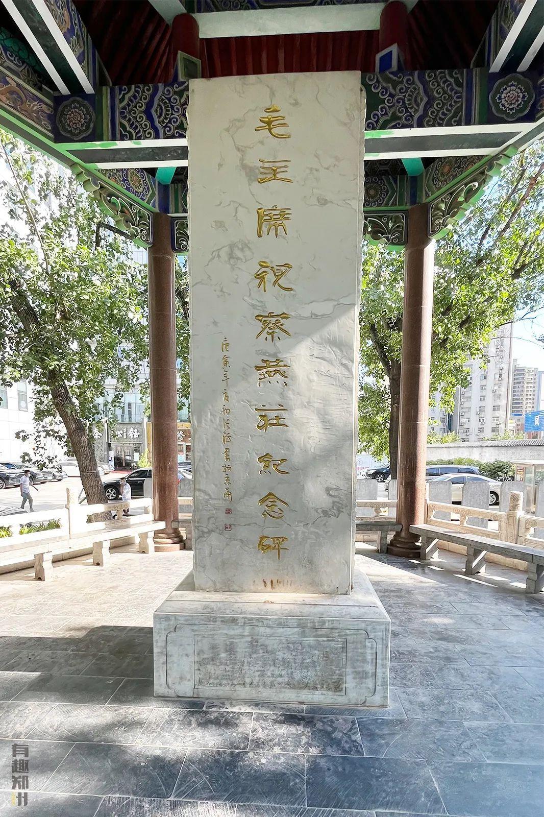 1960年毛主席来燕庄视察,十年后燕庄人为了纪念,就地建造了碑亭,经过近半个世纪的洗礼,如今依然矗立在繁华的金水路路边。