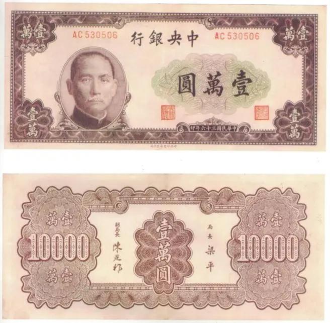 在抗日战争和解放战争期间,国民党政府采取通货膨胀政策,法币急剧贬值。1937年抗战前夕,法币发行总额不过14亿余元,到日本投降前夕,法币发行额已达5千亿元。到1947年4月,发行额又增至16万亿元以上。1948年,法币发行额竟达到660万亿元以上,等于抗日战争前的47万倍,物价上涨3492万倍,法币彻底崩溃。1937年抗日战争前,法币的总发行量不超过14亿元。1937年抗战开始至1941年英美参战前,日本为破坏中国后方经济,在日占区强行以日本发行之货币收兑法币,