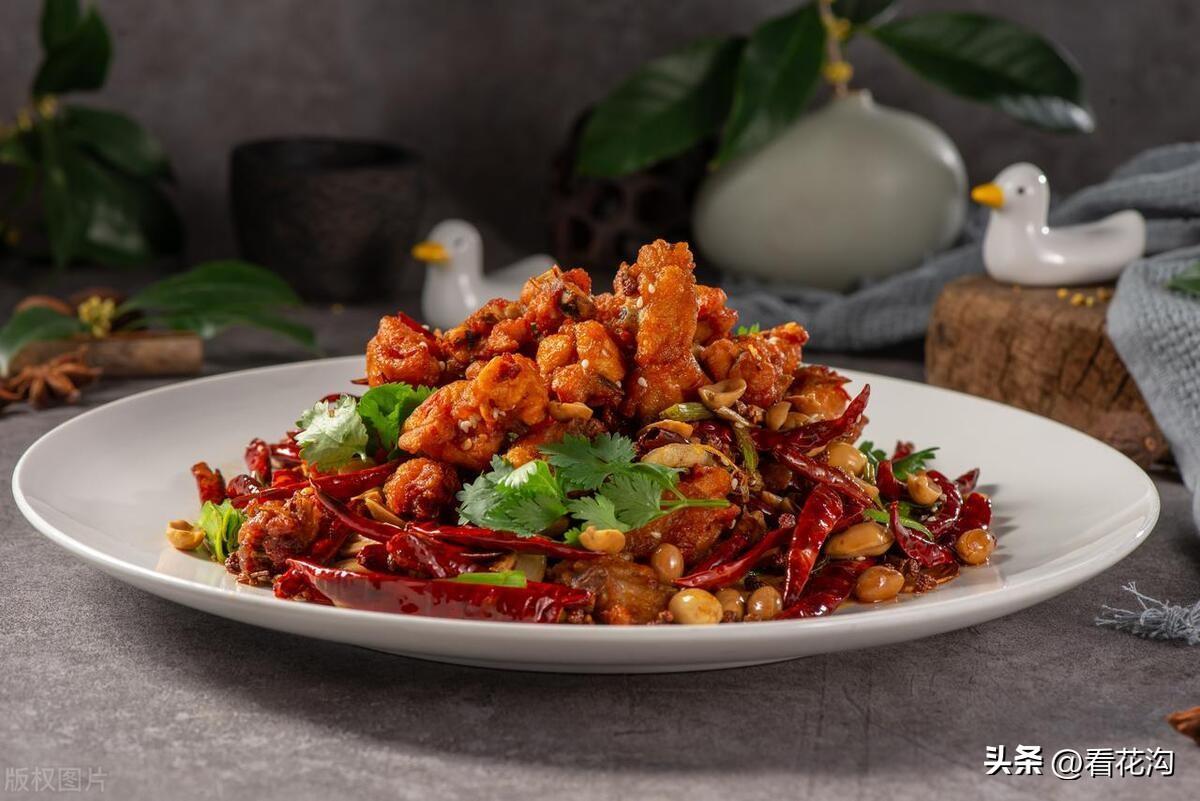 30.西华县的地方特产-白土岗辣子鸡。辣子鸡是西华县白土岗一带的地方名吃。它用土鸡、辣子做主要原料,将鸡垛成块状,用铁锅、菜油、辣椒猛火爆炒去水分,待鸡块自身炒出肉油时,倒入高压锅加开水闷炖10—15分钟,滴上小磨香油,加味精、葱、姜等佐料后即可食用。用刀剁去鸡三尖,鸡身斩成块,红椒切成小段,大蒜瓣一切四粒,锅用旺火烧热,烧至五成热时倒入大蒜粒、姜片、红椒炒出香气,再加鸡块翻炒,炒至鸡块收缩转色,加酱油、精盐、黄酒、白糖、蚝油,用中火翻炒,见汤汁快炒干时,加老抽、味精、葱段,翻炒均匀后装盘。
