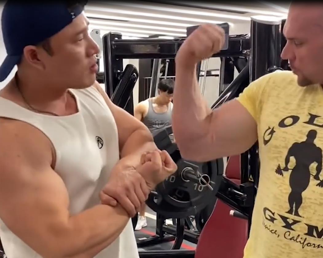 巨石强森健硕的肱二头肌亮出来,都能顶常人的三条腿粗了,能做他的教练,可想而知申驰的实力有多强。