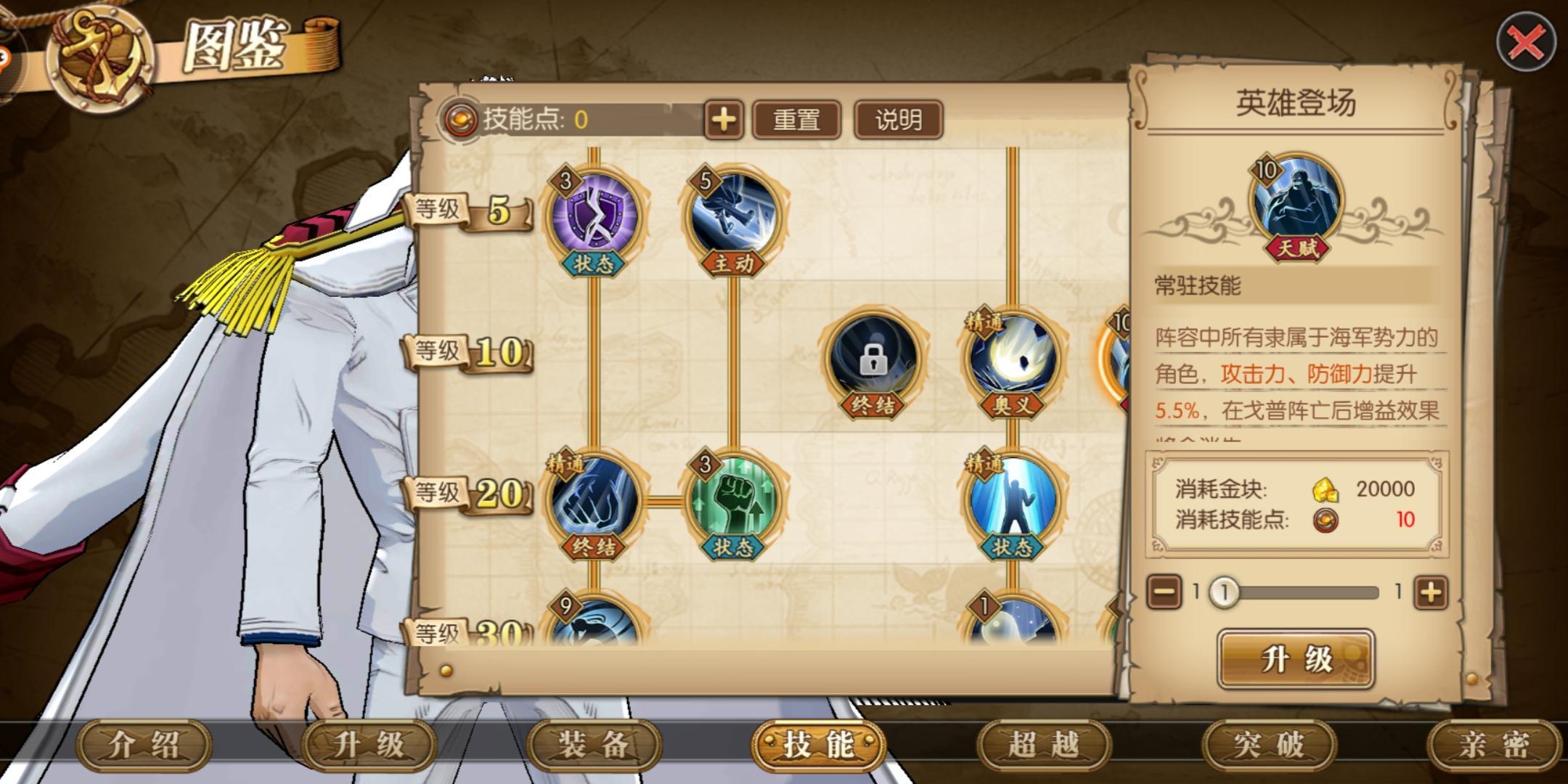 如果你的阵容主打三大将或者有着多数海军势力角色,那么请将英雄登场点满,这个天赋能够提升这些角色的攻击力与防御力。