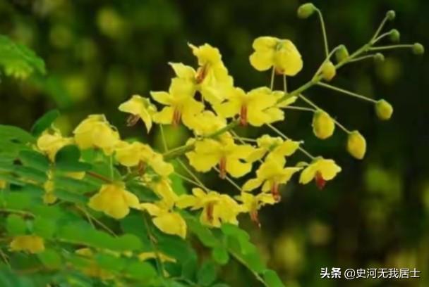 云实树在豫南地区并不常见,这位豫南决水之滨的“史河无我居士”,曾经在自家庭院里种植过一棵,甚为茂盛,做为观赏植物,它叶色碧绿,花色嫩黄,云实树进入花期以后,娇艳美丽的黄花开满枝头,那样子特别漂亮,能让人心旷神怡,有一种浓浓的药香!