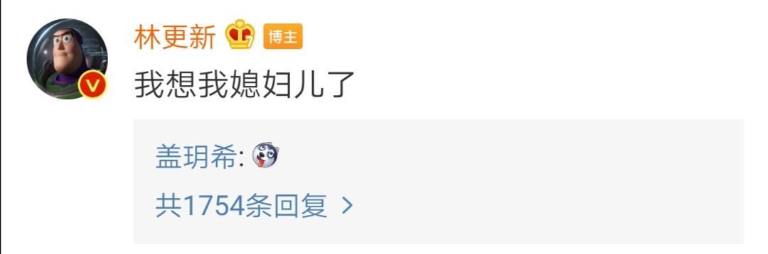 林更新在社交平台上也是一口一个“媳妇”的叫着,盖玥希还特意跑来留言,仿佛认领这个称呼一般,让人浮想联翩。