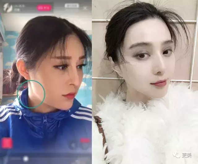 看这妹纸的侧脸下颌角和赘肉都很明显,跟范爷还是有很大差距的