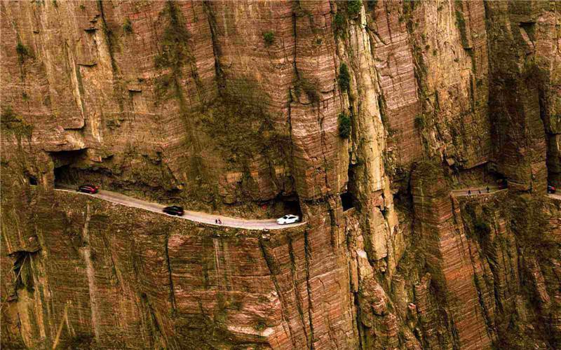 挂壁公路是在悬崖峭壁上开凿而出的,我国一共有六条挂壁公路,主要分布在太行山及晋东南,有锡崖沟(陵川县)、郭亮(辉县)、陈家园(陵川县)、回龙(陵川县)、昆山、井底(平顺县)。其中郭亮被称为“第九大奇迹”、“世界最险要十条公路之一”、“世界十八条最奇特公路之一”。在如此险峻的山上直接开凿公路,艰辛和危险可想而知,所以挂壁公路排在第一位也是应当的。