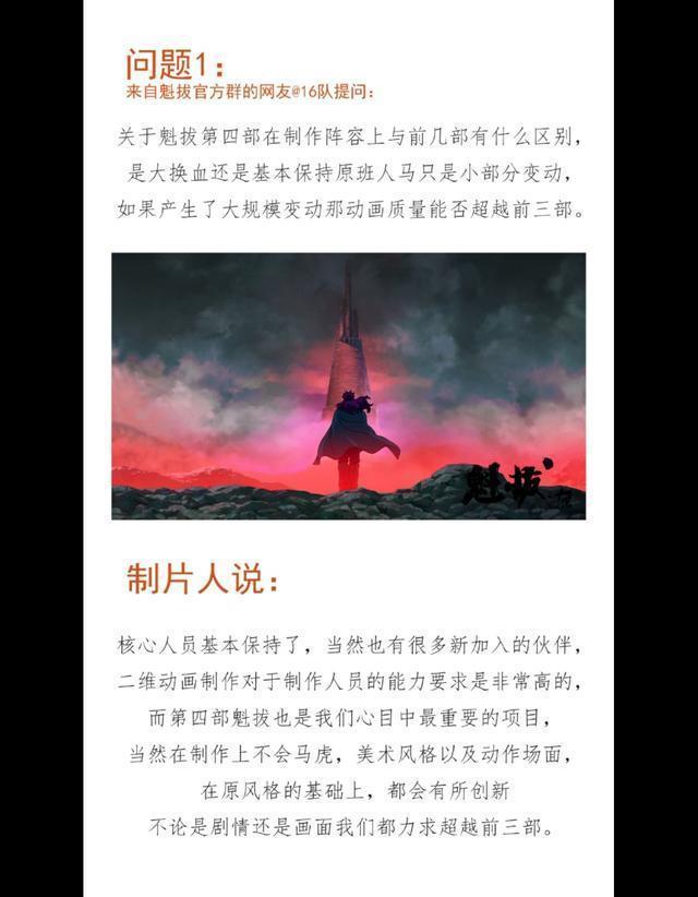 魁拔的画面进步大家有目共睹,确实一部比一部进步。我们知道,魁拔电影系列本计划五部,而现在的第四部《魁拔4之梅零落》原名“最后的魁拔”,这本也就是官方的双关文字。还好,不久前官方发布的消息让人心头一震,两大佬将加入番剧与影视的制作,下面放图。