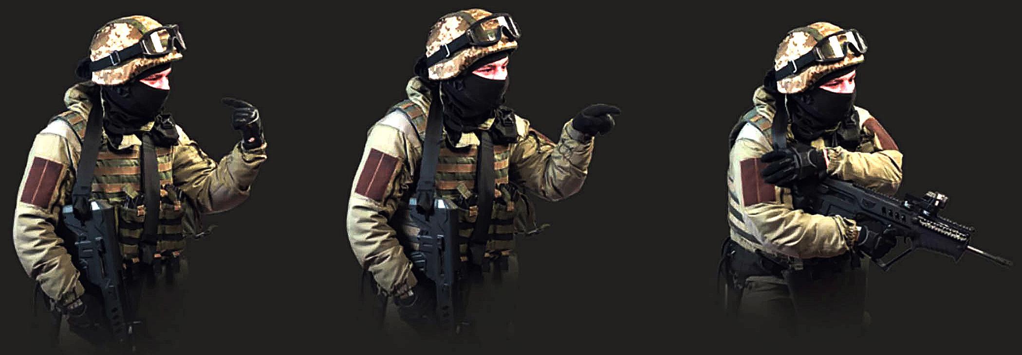士兵通过观察指挥官的手势得知命令,并相互传达,快速做出反应和部署,通常在不被敌人知晓的情况下,无声的消灭敌人,或者向敌人发起突袭,一举歼灭。