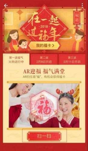 用户只要打开“AR扫一扫”,让自己的亲朋好友在手机镜头前比出“五福到”的手势,则有机会获得一张福卡。