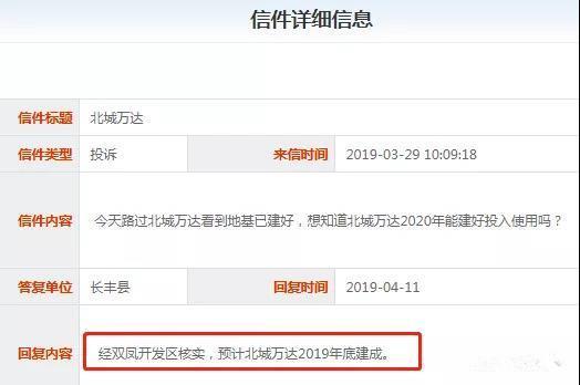 近日,有网友在合肥12345政府直通车上留言咨询合肥北城万达最新进展,官方正式回复,经双凤开发区核实,预计北城万达2019年底建成。