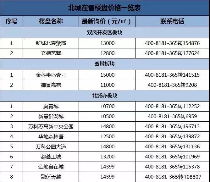 大部分楼盘价格都在1.0-1.3万/㎡之间,金科半岛壹号目前是北城楼市价格天花板,最高卖到了1.5万/㎡,万科苏高新中央公园和万科公园大道均价则在1.48万/㎡。
