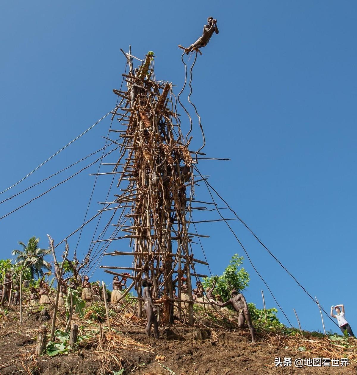 瓦努阿图北部彭特科特岛(Pentecost Island)上的居民,在每年4、5月份都要举办“纳戈尔跳(Naghol Land Diving)”仪式,参加“纳戈尔跳”的人都要冒着死亡的危险,因为除了脚腕上的藤条,再没有什么其他的安全措施。这一古老仪式可追溯到1500多年前,被认为是现代蹦极的前身。新西兰人将原始蹦极发扬光大,成立了世界上第一个蹦极协会,并在1988年首次向社会公开展示高空悬跳,并大力推广这一运动。