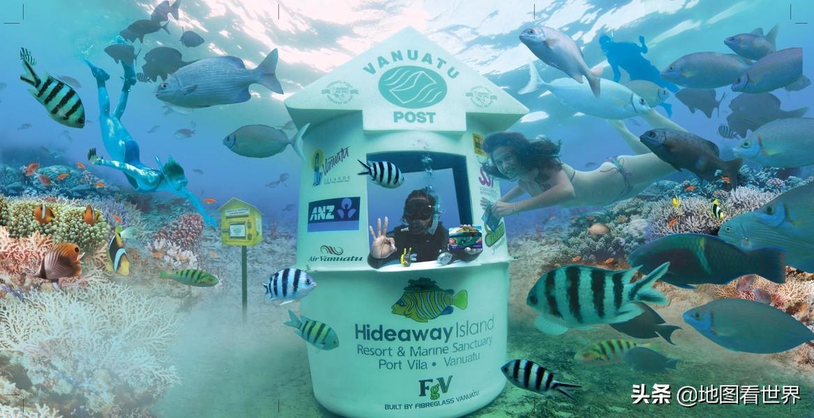 为了吸引游客,瓦努阿图建造了世界上唯一一所海底邮局。该邮局由经过专业潜水训练的邮政人员在水下办公,寄信的人要戴上呼吸器下到三米深处投递防水明信片,然后邮局的人会在上面加盖特殊的封印。顺便还可以留个影。