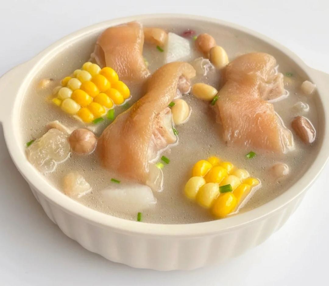 食材:猪蹄,白萝卜,玉米,黄豆,花生