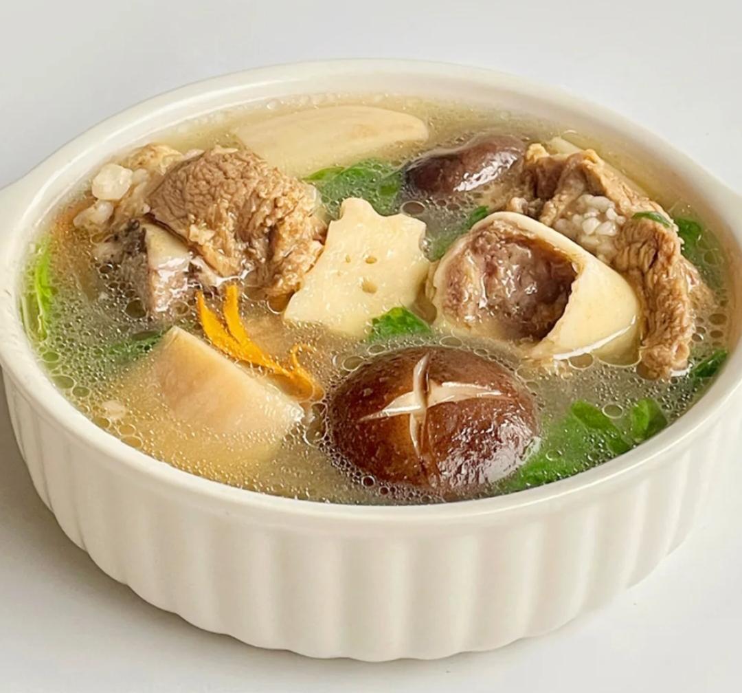 食材:猪筒骨,莲藕,菌类,青菜,生姜,葱