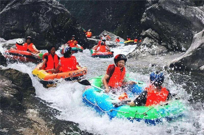 峡谷内飞瀑高悬,溪流淙淙,潭幽池清,乘橡皮舟挥桨击水,穿流于翠岭幽谷之间,绝对是一次惊险而浪漫的漂流历险记。