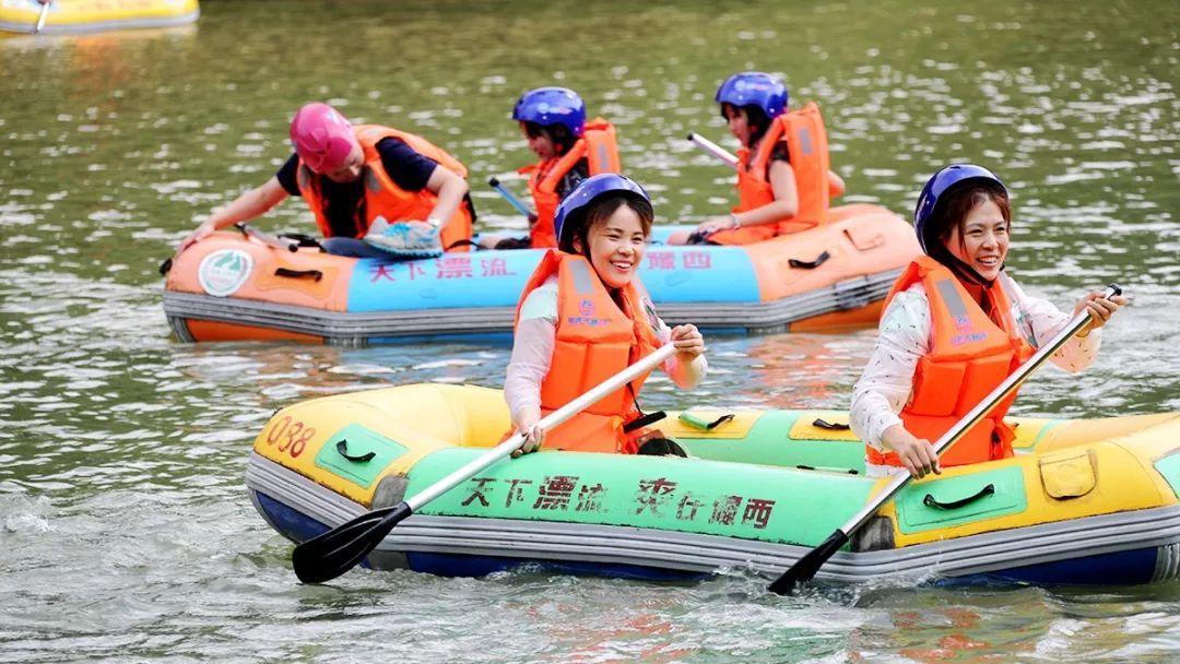 想象一下,一条蜿蜒的河流,四面翠林环绕,乘着皮筏,迎着激流,刺激紧张何尝不爽?