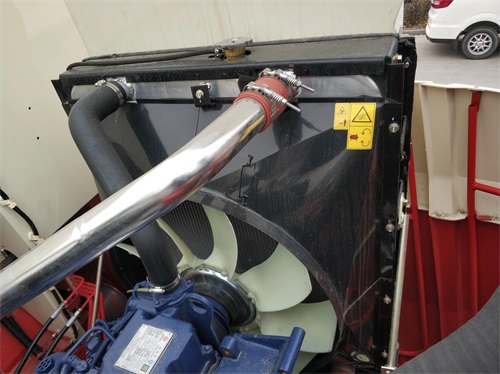 11.水箱散热器采用美国技术的板翅式加大型散热器,散热管里面有散热片,水箱加大、散热片波距大,散热能力、抗震能力强,防堵性能好,散热效率提高30%,上面配有进气除尘装置,免去或减少灰尘及杂物的清理频次。燃油箱今年加大至310L,保证用户一天作业用油。