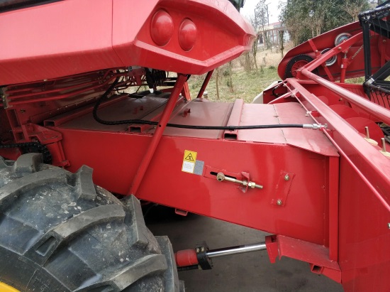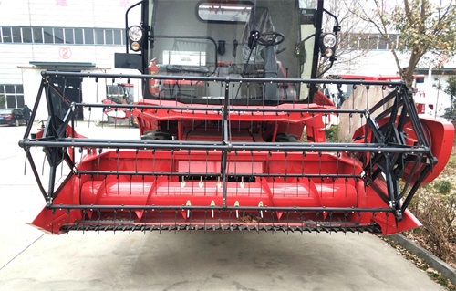 2.它配备的割台割幅是2.75米,也可选装2.56米或2.9米割台,近两年,随着建设美丽乡村进程的加快,农村道路硬化、扩宽,2. 75米的割台机型需求呈现上升趋势,同时割台宽了,作业效率也更快。另外也可根据收获作物不同,换装大豆挠台、4行玉米籽粒割台等。拨禾轮支架采用前弯式设计,倒伏作物收割适应性强。
