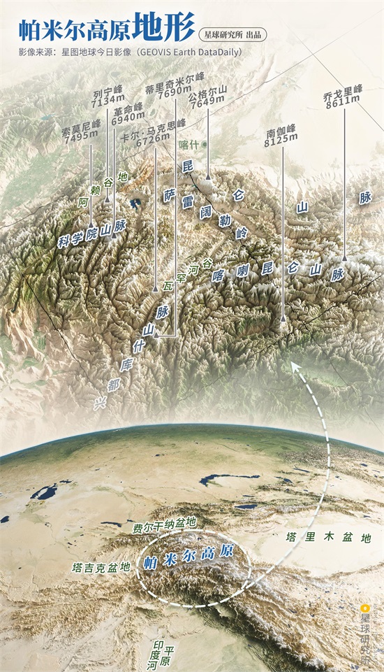 (帕米尔高原地形图,制图@张松楠&张琪/星球研究所)