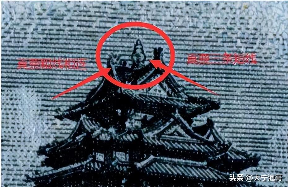 A11:票券正面右图角楼右下角有汉字“行”字暗记;