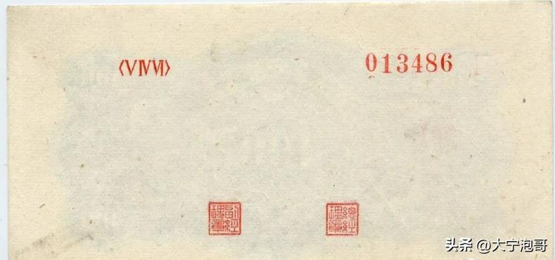 B3:票券背面1949年号左侧有汉字“中”字暗记;