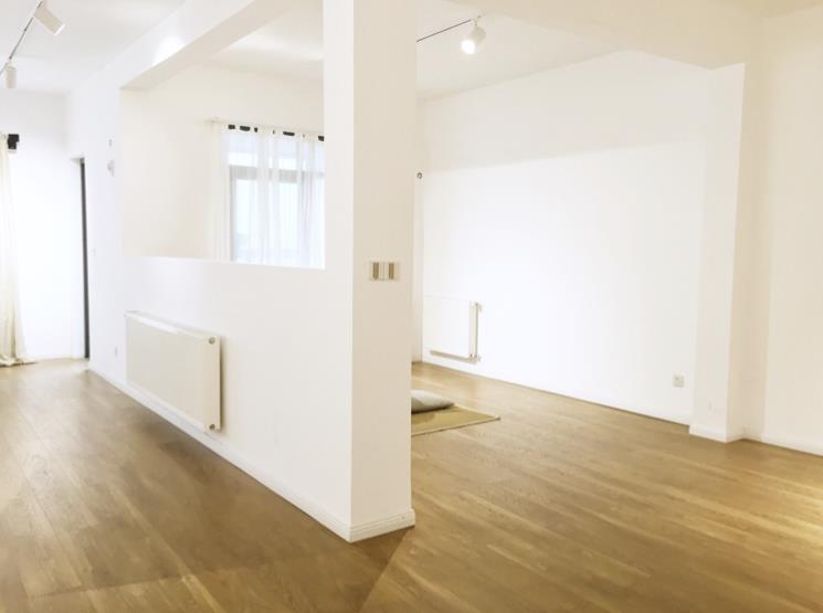 左侧是客厅和一个休闲茶室。全屋大白墙,几乎无吊顶,地面是纯实木地板非常环保。