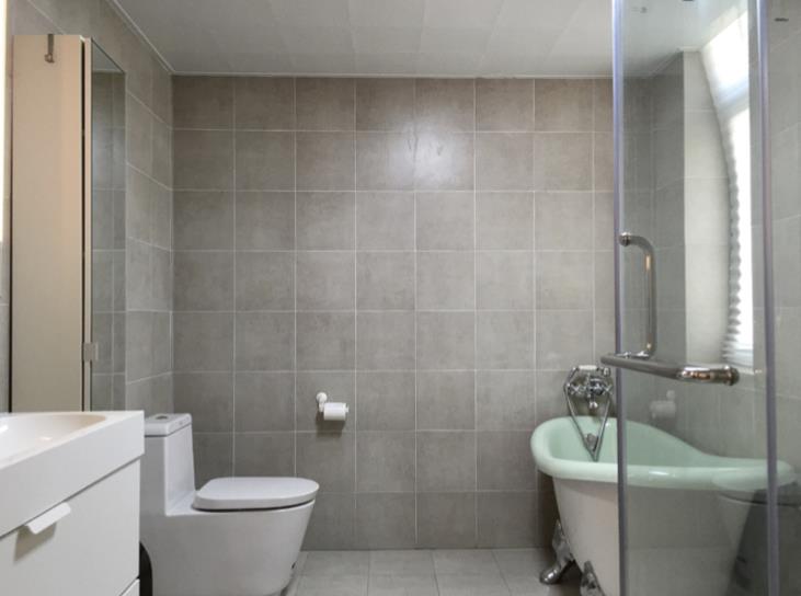 主卫较大,内部有独立淋浴房,还有泡澡的浴缸。