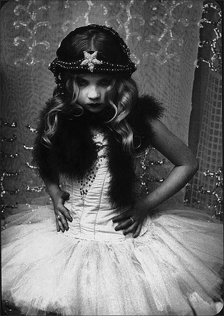 她将女儿Eva扮装成小妖精的系列影像,不断撩拨男子,让心怀不可告人萝莉情结的男性痞子于私室视若珍宝。色情艺术的姿态造成了极大的争议。