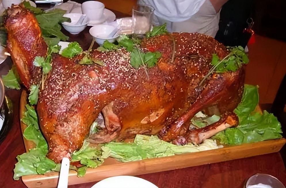 8:名士多烤全羊:这道菜源自蒙古族的传统名菜。在济南,这道菜经过改良创新,更加符合当地人的口味。整只羊经过精心烤制,外皮金黄酥脆,内里鲜嫩多汁。
