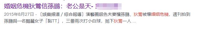据悉,孙鹏曾在2015年时被拍多次走进林姓女球友的大楼,传出婚姻危机,不过狄莺选择站在老公这边,还在个人社交平台上发文力挺“不管外界怎么说,我相信我老公,就是相信,没有人可以破坏我的家庭!”但她的互关好友却在底下留言:“其实他们朋友之间都知道,也有一段时间了…”似乎只有狄莺被蒙在鼓里,当时闹得很不堪。