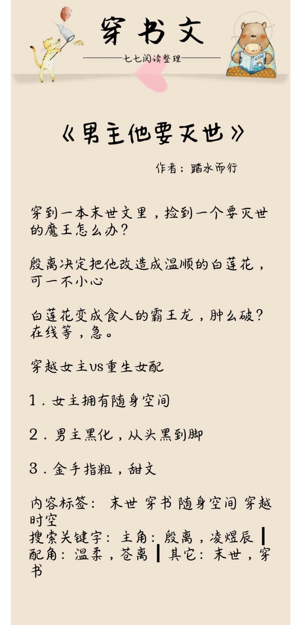 Ps:穿越末世文,男主大魔王设定,家里有个哥哥,但父母比较溺爱大哥,对弟弟男主不怎么好,女主前期强势,后面稍显懦弱,被女反派害了很多次,有一丧尸男配,很快就领便当了。小说人设虽然还不错,不过后面内容槽点略多,文荒撸一下