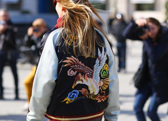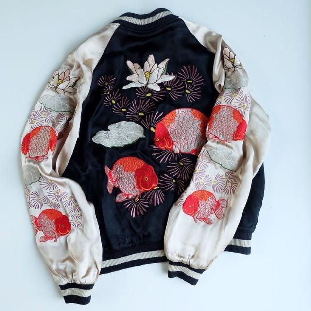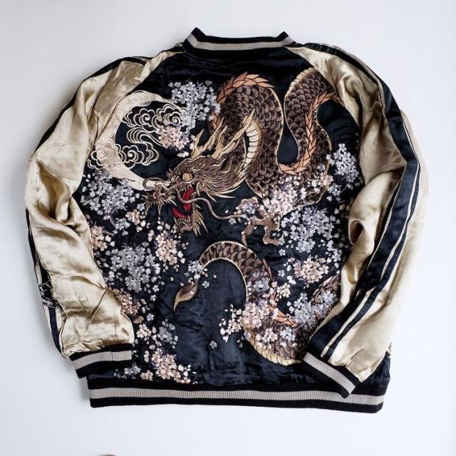 因为横须贺盛产各类型的刺绣绸缎制品,所以有些美国士兵回家时,流行把自己的夹克拿去加上一些日本元素的刺绣。